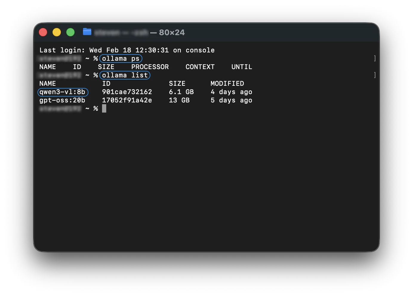 - 已下载视觉模型(示例 qwen3-vl:8b)