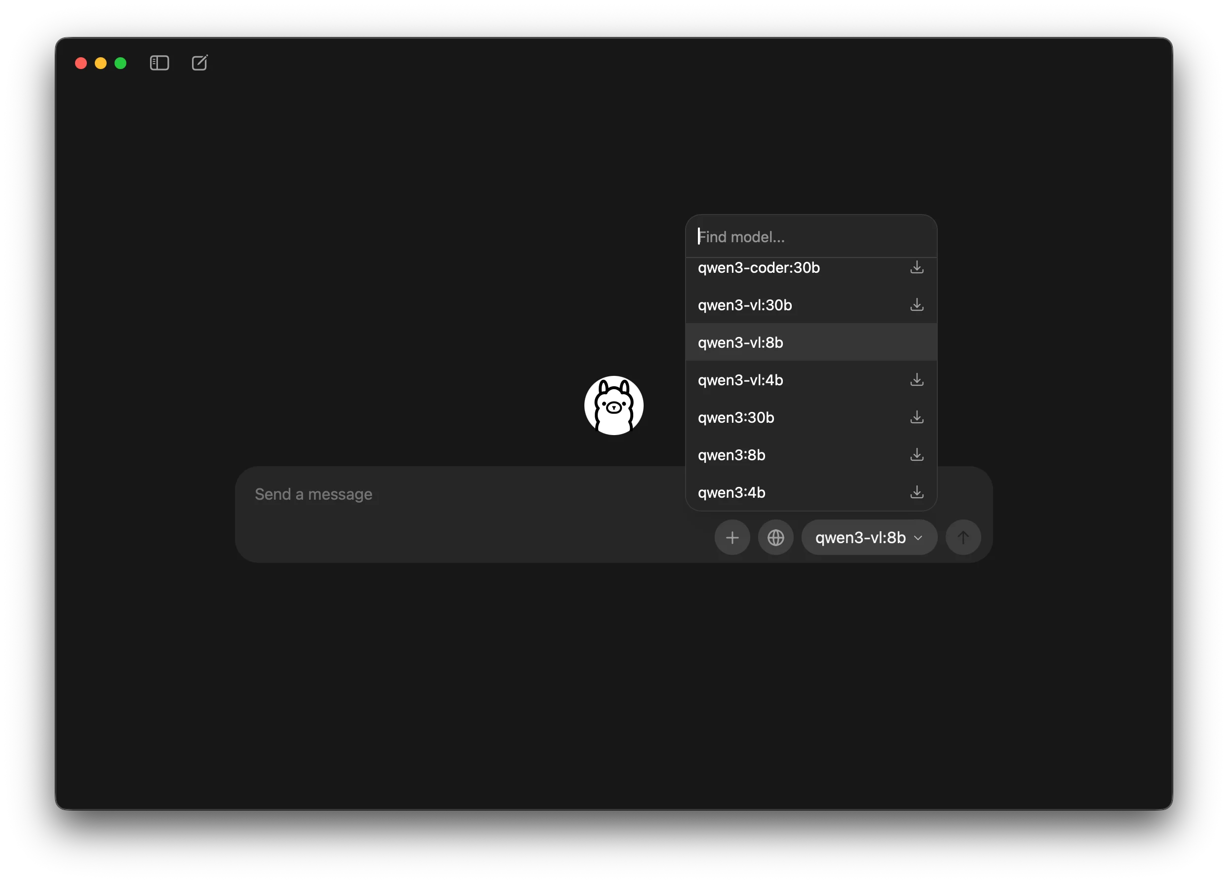 - 下载:ollama对话窗口发送“ollama pull qwen3-vl:8b”,自动下载模型