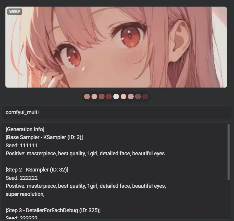 Multi-Stage Support: Captures data from every generation step, including KSamplers, FaceDetailers, and HiresFix, providing a complete "recipe" for reproduction.
