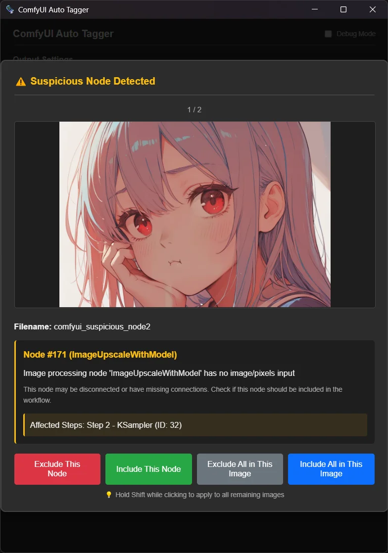 Efficiency: Use Shift + Click in the decision dialog to apply your choice to all remaining images in the batch.